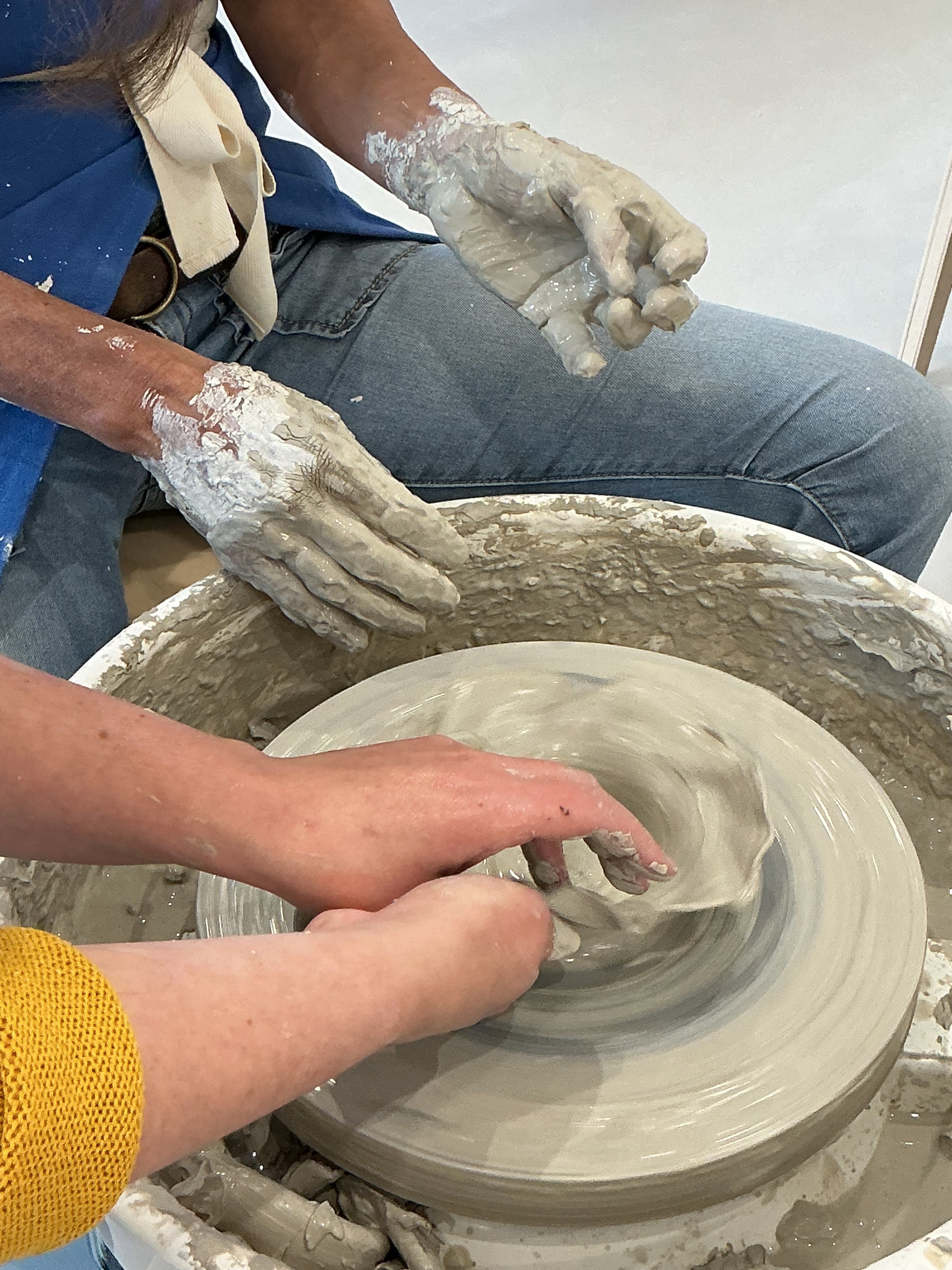 - Démonstration des gestes fondamentaux par votre professeur.e céramiste : centrage, montée de la terre, façonnage.
